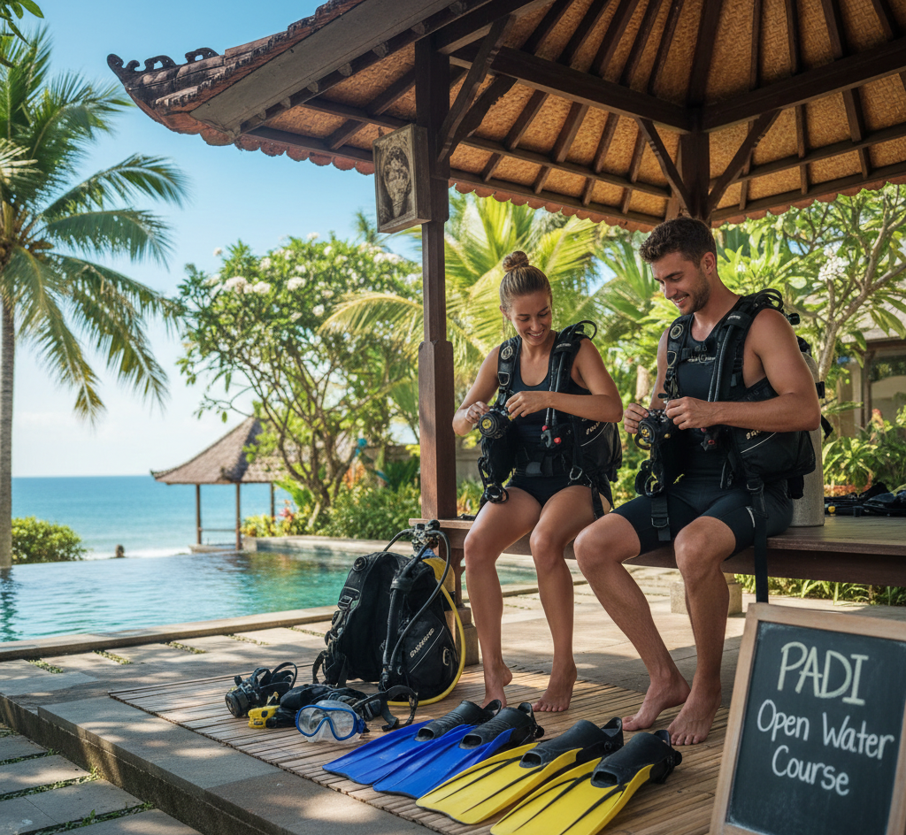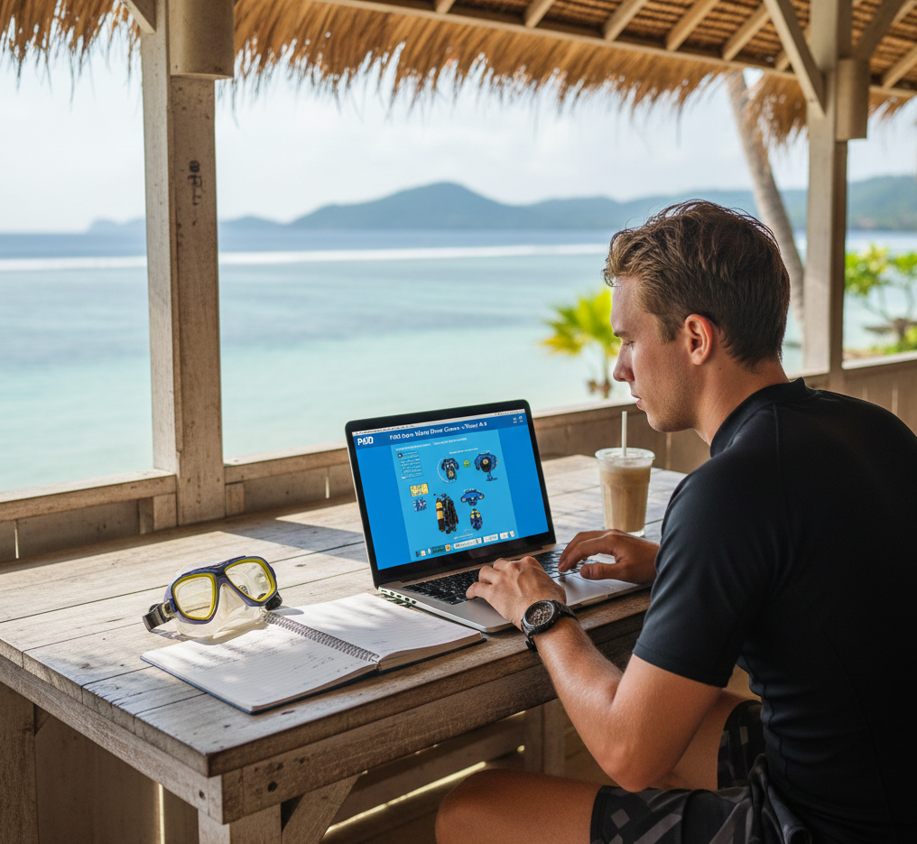 Lerne die Grundlagen der Tauchphysik, Ausrüstung und Sicherheit. Dank modernem e-Learning kannst du die Theorie bequem schon vor deinem Urlaub zu Hause abschließen, damit du auf Bali mehr Zeit im Wasser verbringst.